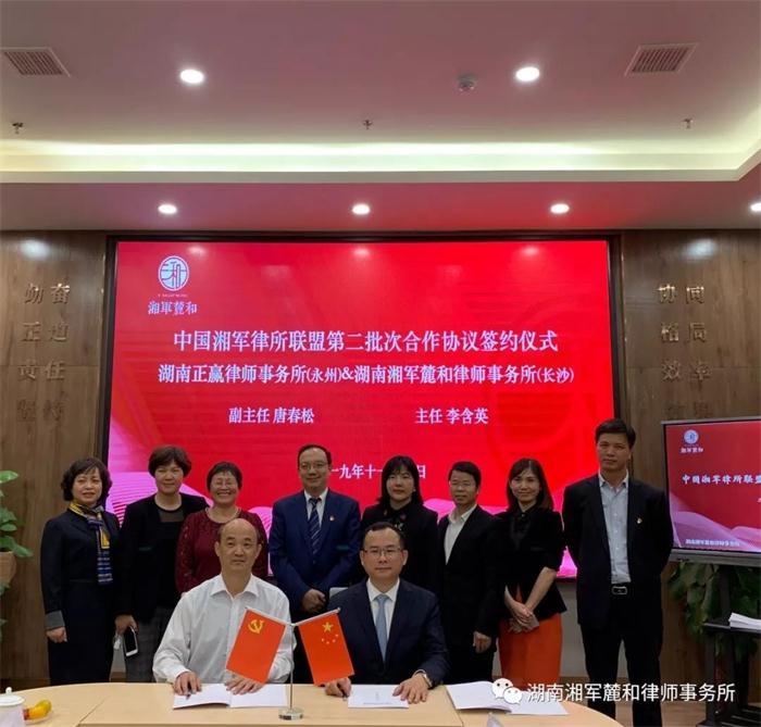 “中国湘军律所联盟”将于2019年12月底前分批完成湖南省14个地州市联盟创始成员所的签约工作,并召开联盟正式成立大会。下一阶段,联盟还将进一步开展境外、省外战略合作所的考察、洽谈工作。
